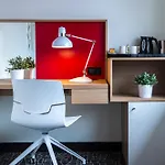 Os quartos têm local de descanso, juntamente com máquinas de café/chá para sua conveniência. Eles são fornecidos com janelas a prova de som, juntamente com mobiliário elegante.